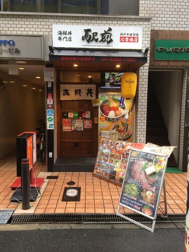 行って来ました行き方は大阪メトロ本町駅、12番出口から出て右に真っ直ぐ歩く丼池ストリートを右に入って真っ直ぐKATACHIってカフェの前を左に曲がると着きます『海鮮丼』ってサンドバッグみたいなんある所ですメニュー1枚目左上の宇和島の鯛めし(880円)を…