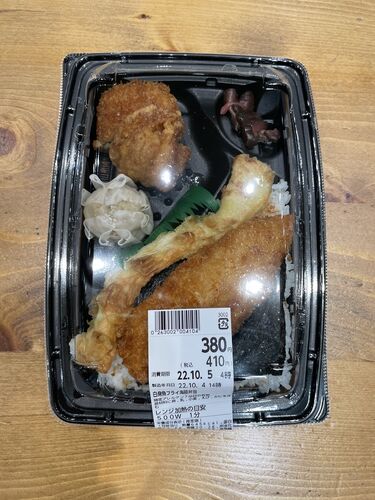 あべのキューズモール、地下1Fにあるイトーヨーカドーで410円あべのキューズモールは天王寺MIO寄りが近い。天王寺駅の地下道通って行けます。駅員さんに聞いたら絶対教えてくれます 弁当の中はこんな感じ(全てのおかずに付属のしょう油をかけた) コロッケ…