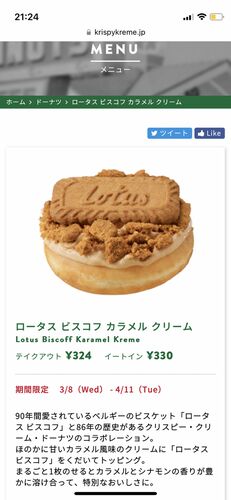 妹が緑のドーナツ屋で買って来た。ありがとう 期間限定4種類の中から右上の『ロータス ビスコフ カラメル クリーム』を貰った↓ 上のビスケットが存在感あるね 大きなビスケットの周りにある細かいビスケットがフニャフニャ食感で甘くて美味しいドーナツの味…