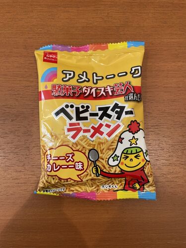 アメトーークで生まれた商品。ファミマで65円ちなみにベビースターは大阪桐蔭の西谷監督も大好きで、教え子の藤浪が750袋とサーバーを差し入れした 藤浪サーバー当てたんかな?チーーズ カレーーの中はこんな感じ あまりカレーの匂いはしない。ほのかに匂う…