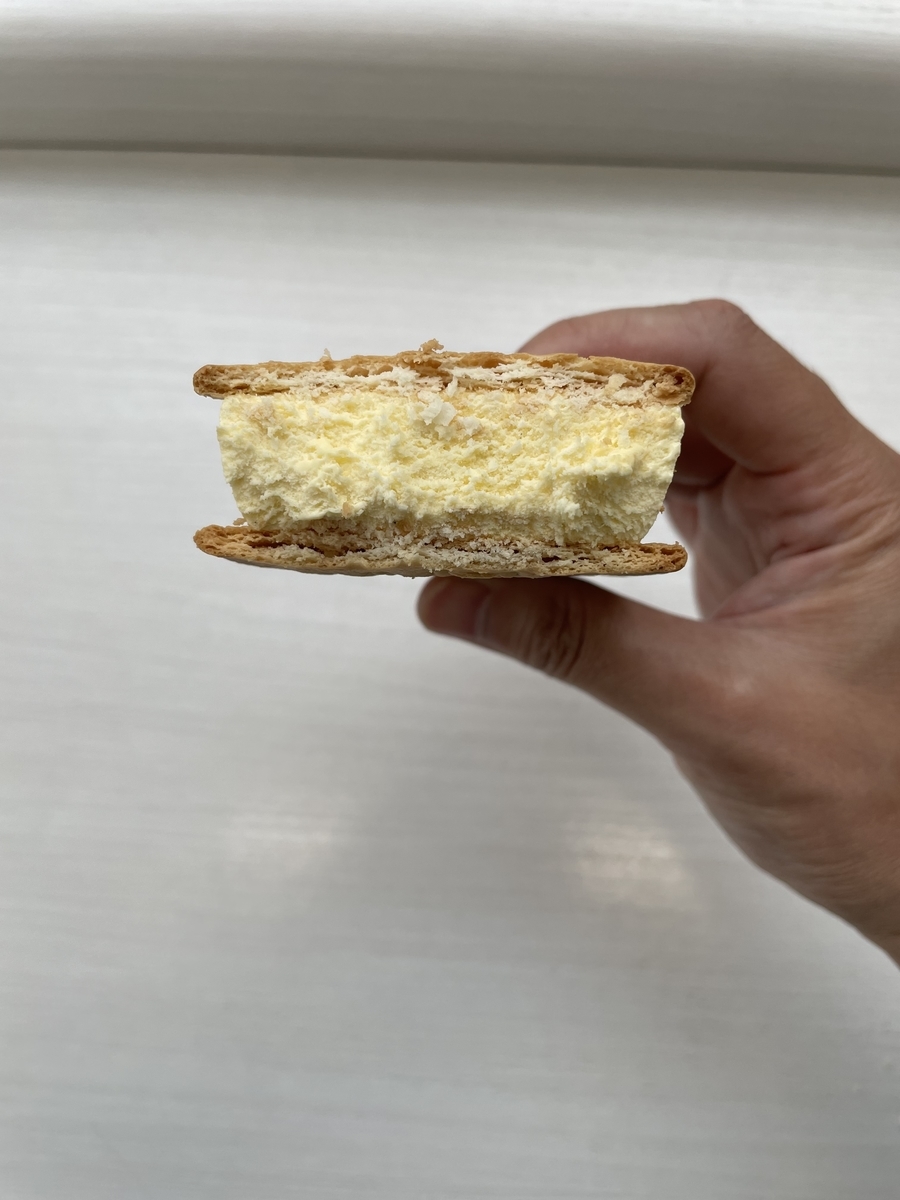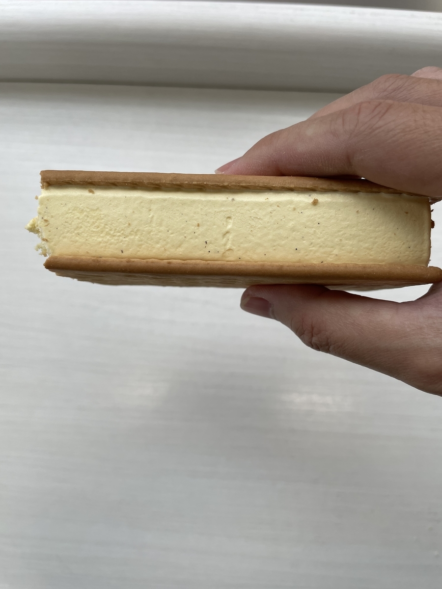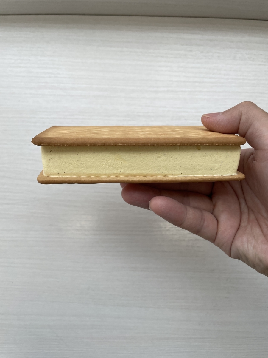 2022-05-21 ビスケットサンドアイス ビアードパパのパイシュークリーム味 アイス ビスケット クッキー シュークリーム ビアードパパ セブンイレブンで172円 バニラビーンズ入ってるのはリッチやね 中はこんな感じ 思ったより大きいビスケット甘くてサクサク食感でめちゃウマ❗️ バニラアイスはバニラビーンズ入って高級感あるが、薄めの甘口ただ、ビスケットの甘さを邪魔してないので薄めでも良い 甘口ビスケットに後味さっぱりのバニラアイスが合ってた👍オススメです