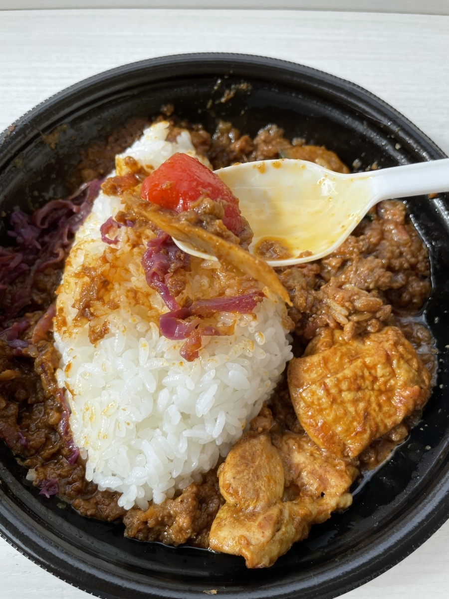 キーマカレーは最初『辛いやつかな?』って思うが、そこで辛さが止まる。ミンチ肉は少し甘味がある