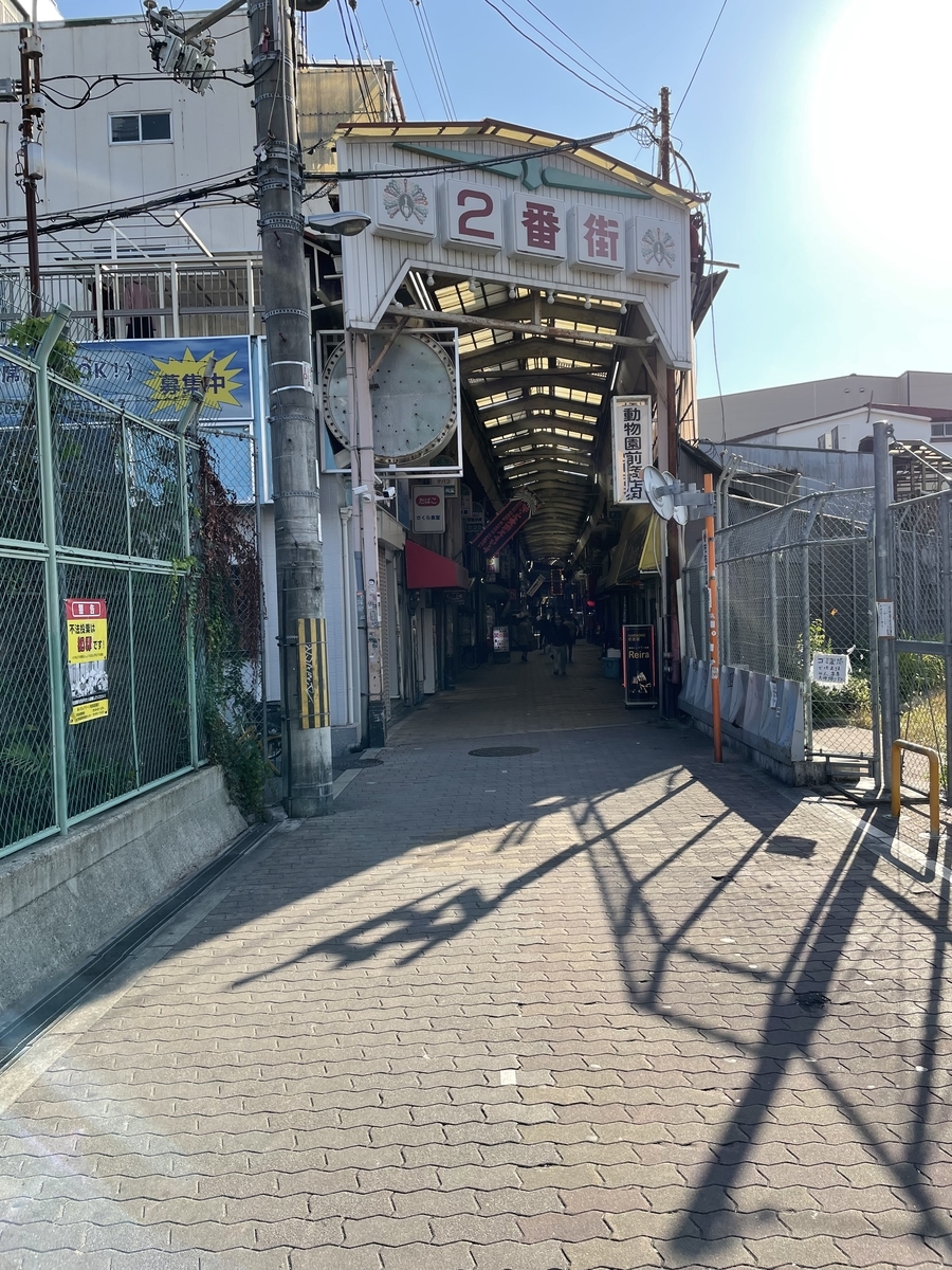 行き方は大阪メトロ動物園前駅、2番出口から一番街、2番街と歩いて行くと着きます
