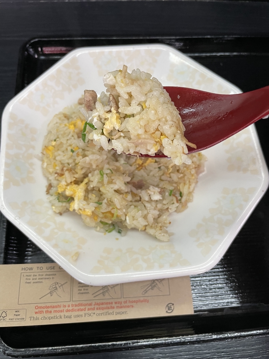 玉子、チャーシュー、青ネギが入ってる塩味チャーハン