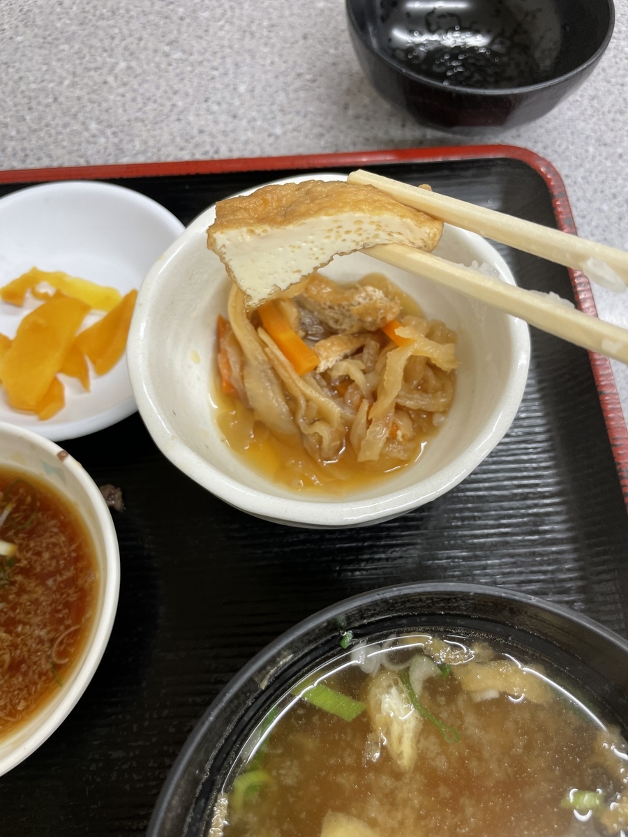 昭和を感じる食堂で食べる定食は"切り干し大根の煮物"と"みそ汁"が良い塩梅で優しかった。落ち着く味やった
