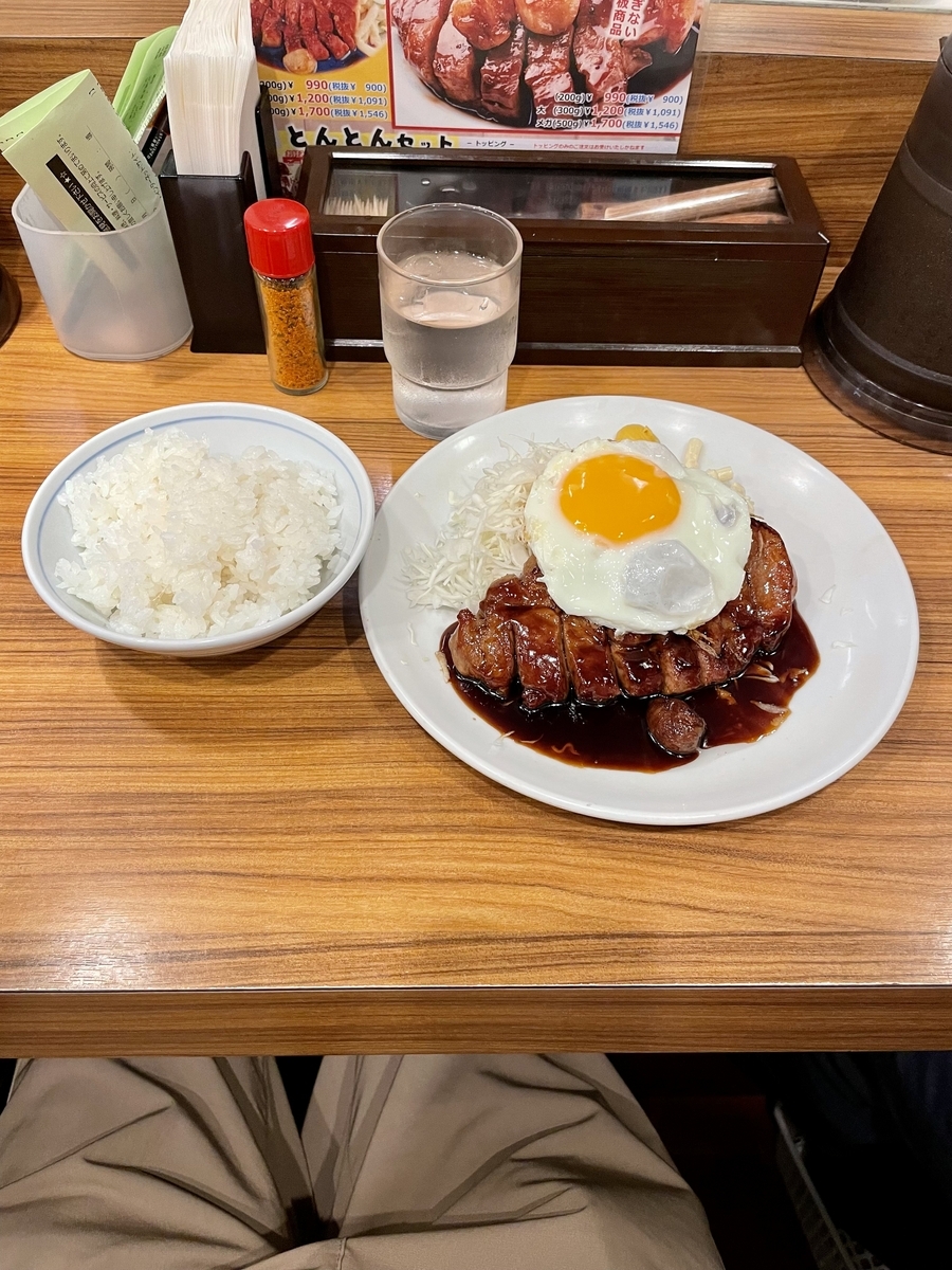 ご飯にトンテキ、目玉焼き乗せて最高やった。これ狙いで目玉焼き頼んだ