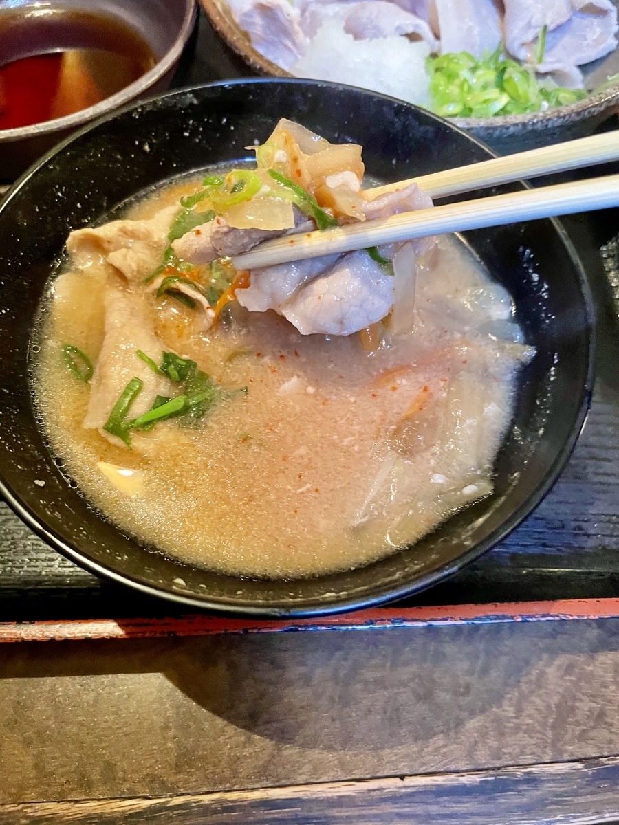 豚汁だが、うどんのかつおダシ的な甘さもあってそれが凄く良い👍