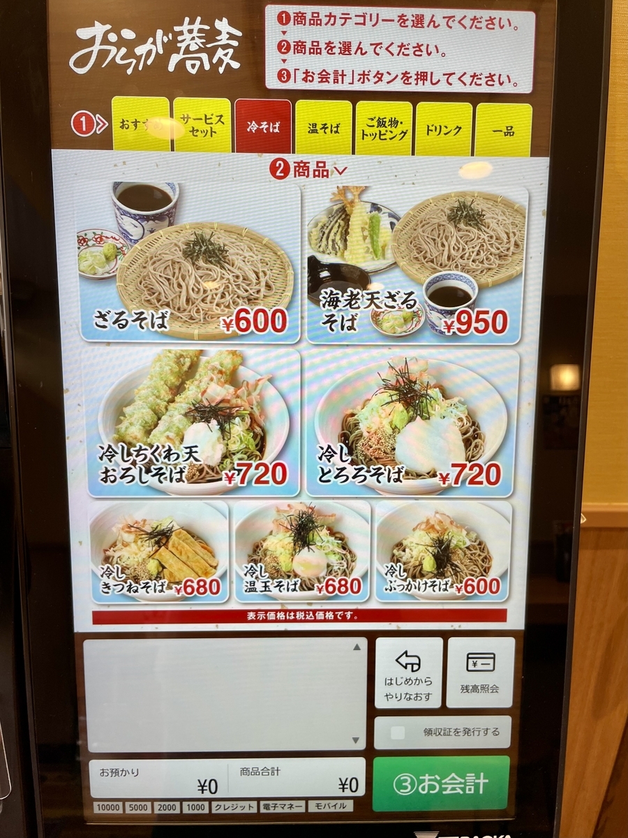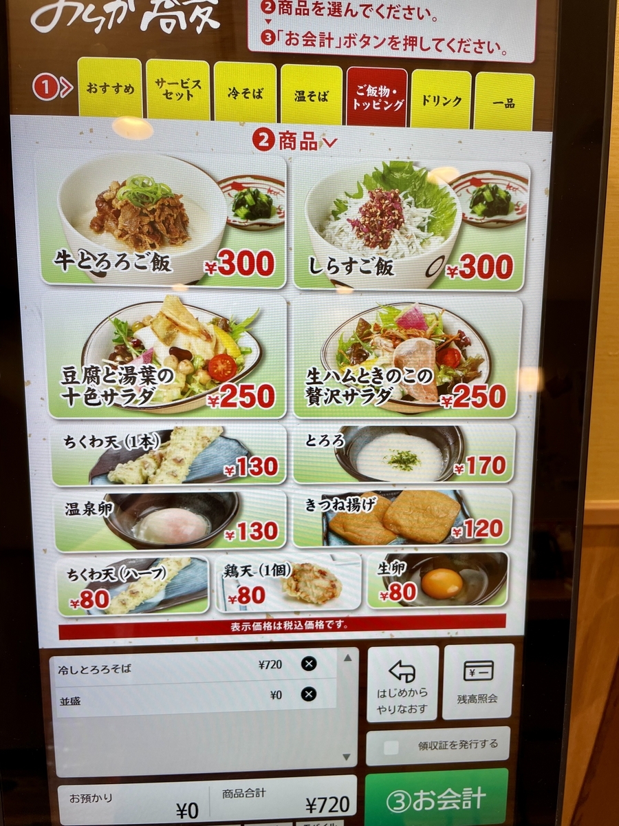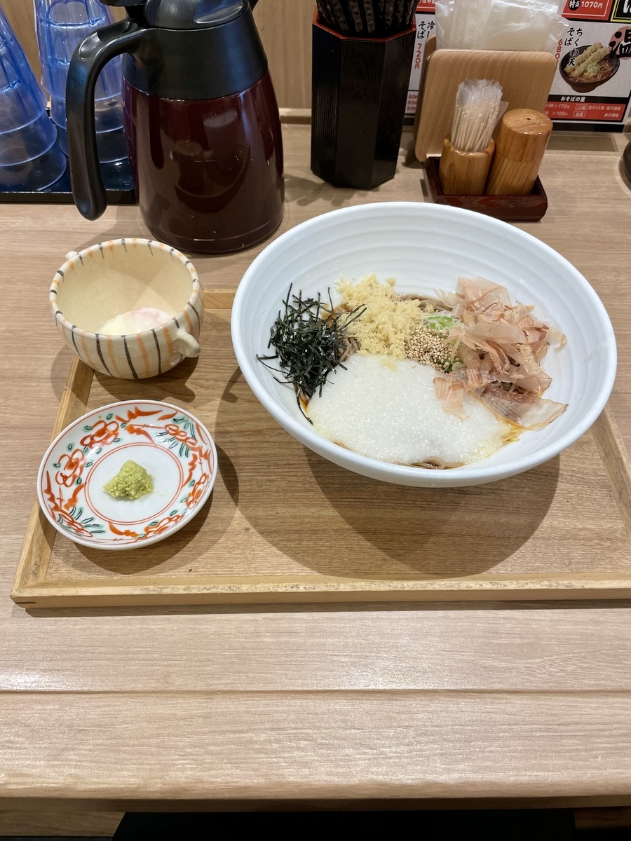 メニューより冷しとろろそば(720円)、温泉卵(130円)注文。計850円