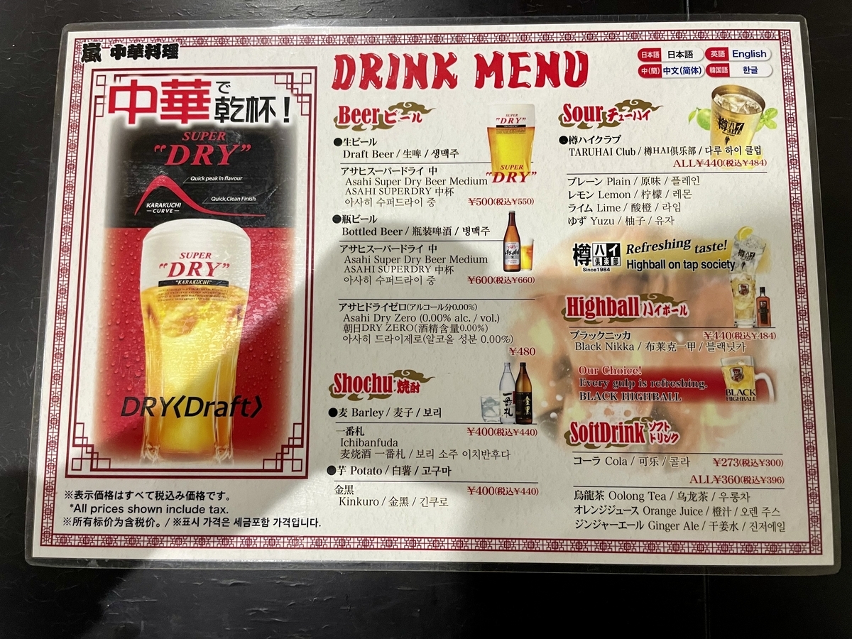 他のメニュー表で締める
