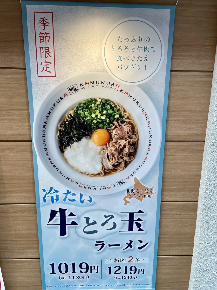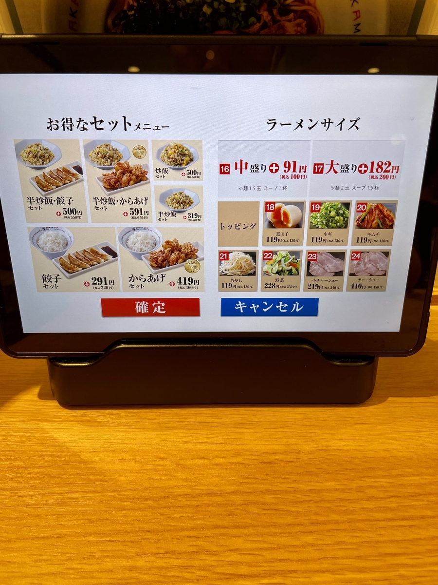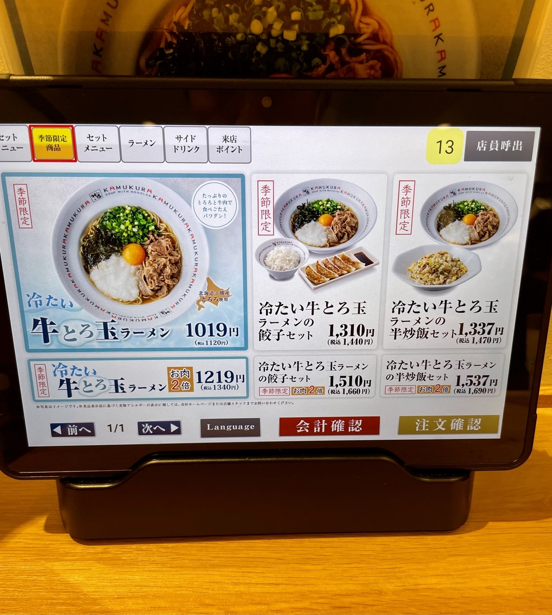 タブレットから"冷たい牛とろ玉ラーメン(1120円)注文