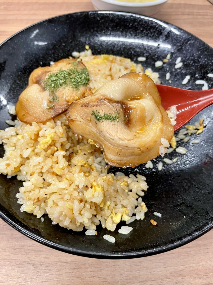 薄切りチャーシューが2枚乗ってて、甘辛いけど後味結構醤油辛いので、もう少し甘くしてほしい