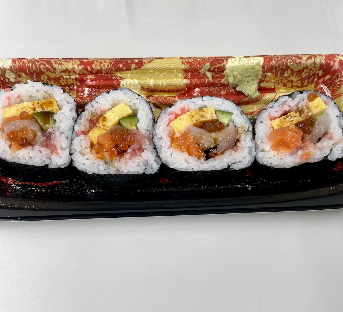 太い海鮮巻。意外にもきゅうりがマストかもしれない