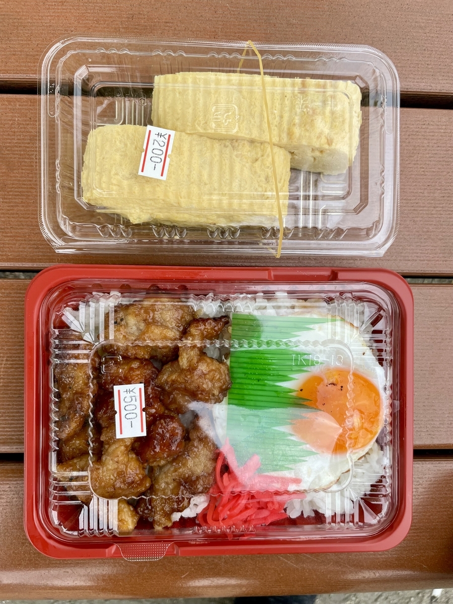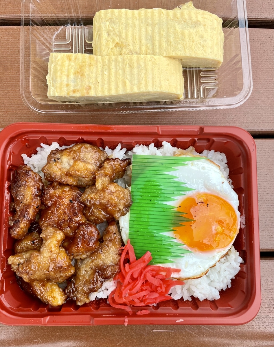 豚天弁当(テリヤキ味・500円)、だし巻き(200円)はこんな感じ